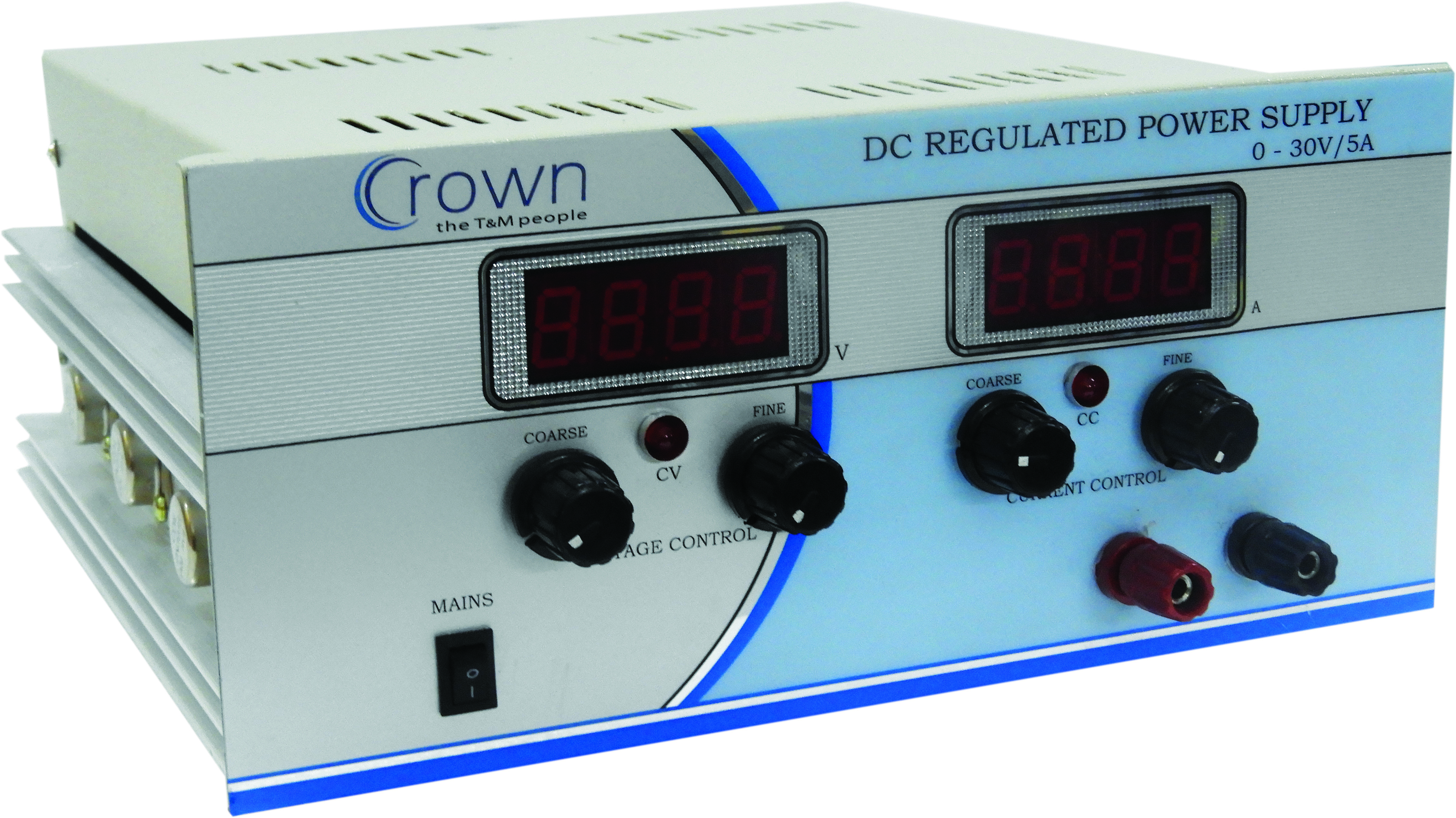 DC REGULATED POWER SUPPLY 0-30V/5A "CROWN" made DC REGULATED POWER SUPPLY are constant Voltage & Constant Current type supplies, have high regulation for Load & Line Voltage variation. The supply are protected against short circuit & over load. The output current can be controlled to any